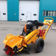 Измельчитель пней выпускается на поворотной раме. (для облегчения процесса измельчения пня). Измельчитель с опцией "наклонного колена" для увеличения глубины проникновения фрезы. Измельчитель оборудован опорной подножкой, убираемой педалью, и счетчиком моточасов.